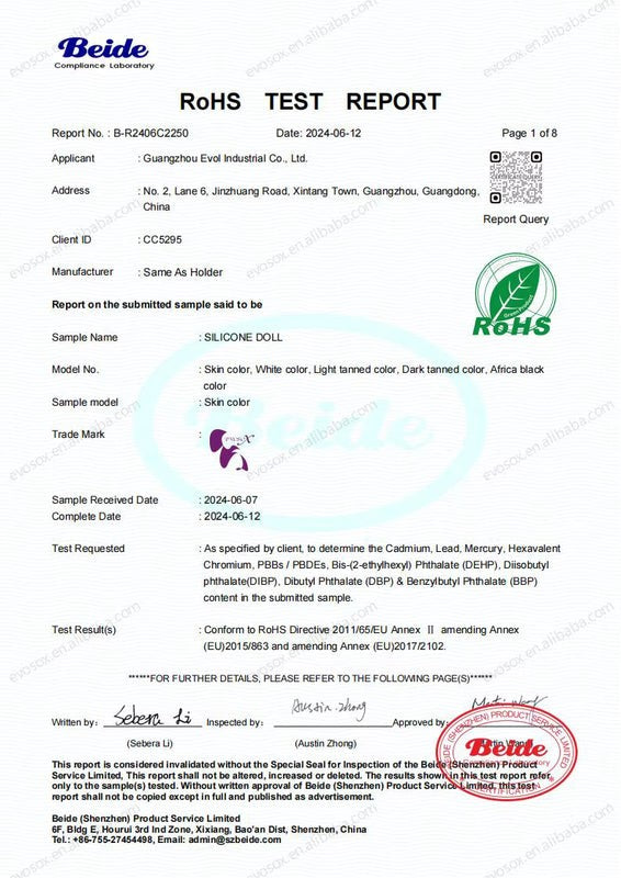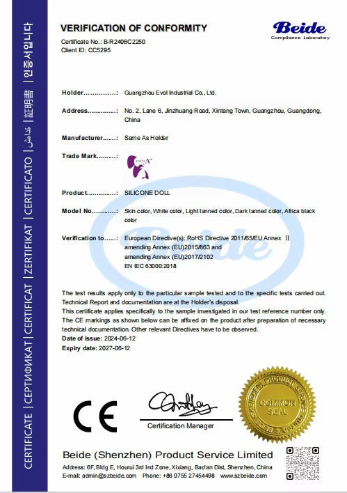 Certificações CE e RoHS: segurança comprovada Todos os produtos EVOSOX fornecidos à LollitaLux possuem certificações CE e RoHS válidas, emitidas pelos laboratórios responsáveis. Cada certificado pode ser confirmado através do respetivo número de registo diretamente no site do laboratório emissor, garantindo total transparência e autenticidade.